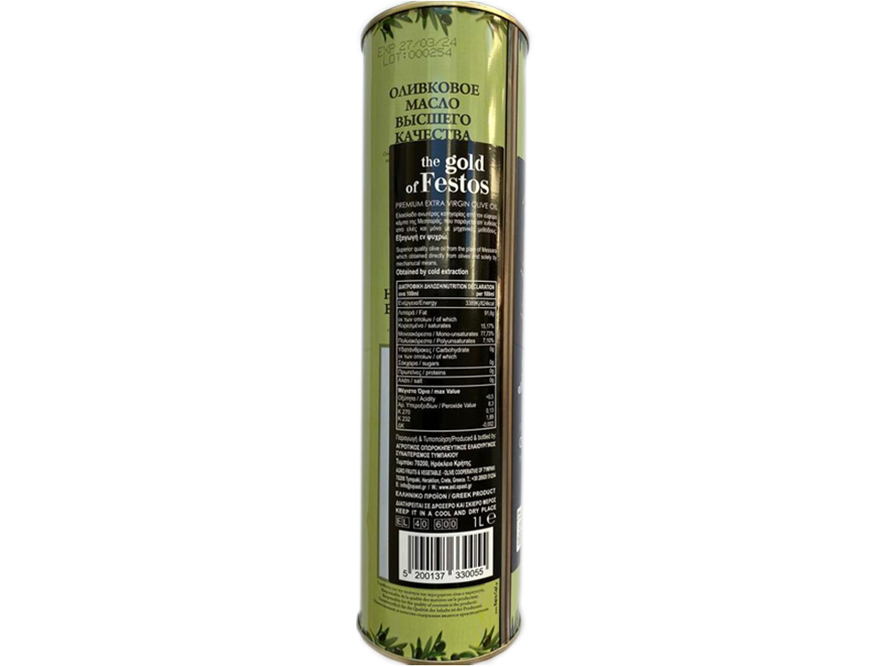 Griekse extra vierge (extra virgin) olijfolie uit Kreta. The Gold of Festos. Premium kwaliteit. In een mooi rond blik van 1 liter. Deze extra virgin olijfolie van de beste kwaliteit komt uit Zuid Kreta, uit het Messara gebied. Deze olijfolie is geperst van 1 soort olijven, de Koroneiki. (De beroemdste variëteit voor de kwalitatieve olijfolieproductie in Griekenland. )