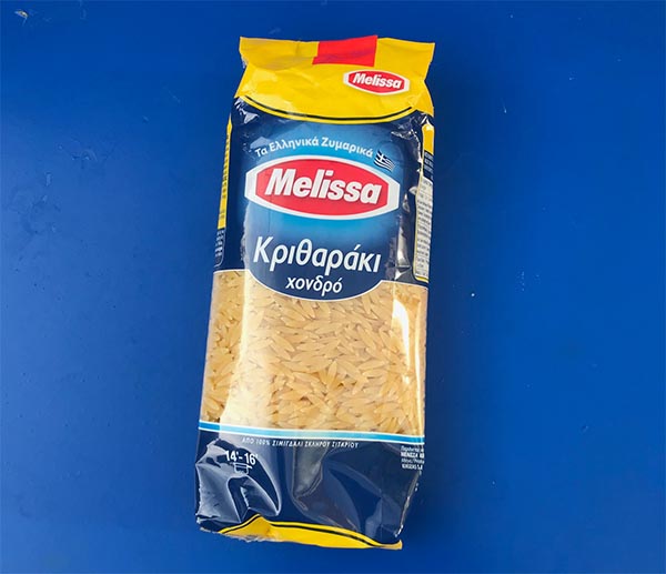 Tijdens een vakantie in Griekenland een keer meegenomen naar Nederland. Deze vorm/versie vind je nergens in de supermarkt in Nederland. De kritharaki serveer ik bij de zelfgemaakte Stifado, waarna het heerlijk smullen is.