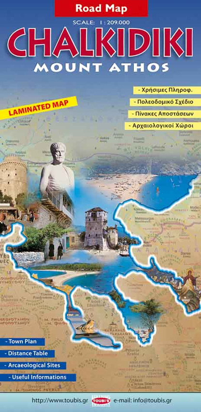 De gelamineerde landkaart van Chalkidiki, uitgegeven door het gerenommeerde Griekse merk Toubis, is de perfecte kaart voor reizigers die de prachtige regio Chalkidiki (Halkidiki) in Noord-Griekenland willen verkennen. Deze gedetailleerde wegenkaart biedt een overzicht van de belangrijkste wegen en routes, inclusief waardevolle informatie over archeologische vindplaatsen, kloosters, stranden en pittoreske dorpjes.