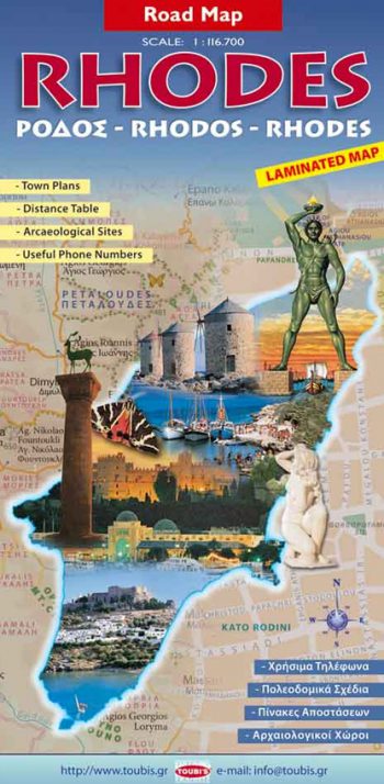 Rhodos Gelamineerde Wegenkaart – Uitgeverij Toubis